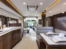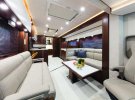 Спальних місць у автівці 4: 2-місне ліжко є в спальні й поруч із кабіною водія. Останнє розкладне. У вітальні встановлено настінний телевізор зі супутниковою антеною. Є в авто кухонна плита із сенсорною панеллю, холодильник, посудомийна й пральна машини із функцією сушарки.
