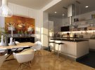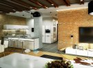 1. Щоб "відокремити" поєднану кухню з вітальні краще зробити дворівневий стелю і використовувати на кухні плитку або лінолеум контрастного відтінку.