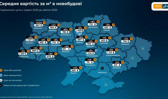 Зазначається, що Київ залишається найдорожчим містом: середня ціна - 1 409 дол./м². Найдешевші новобудови у прифронтових регіонах: Запорізькій, Сумській, Миколаївській.