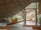 Котедж прибудували до скелі. Дах зробили таким, щоб за формою нагадував кам'яний схил. Використали для цього бетонні панелі. Щоб замаскувати стики між ними, стелю в котеджі оздобили дубовими дощечками, пише beautifullife.info.