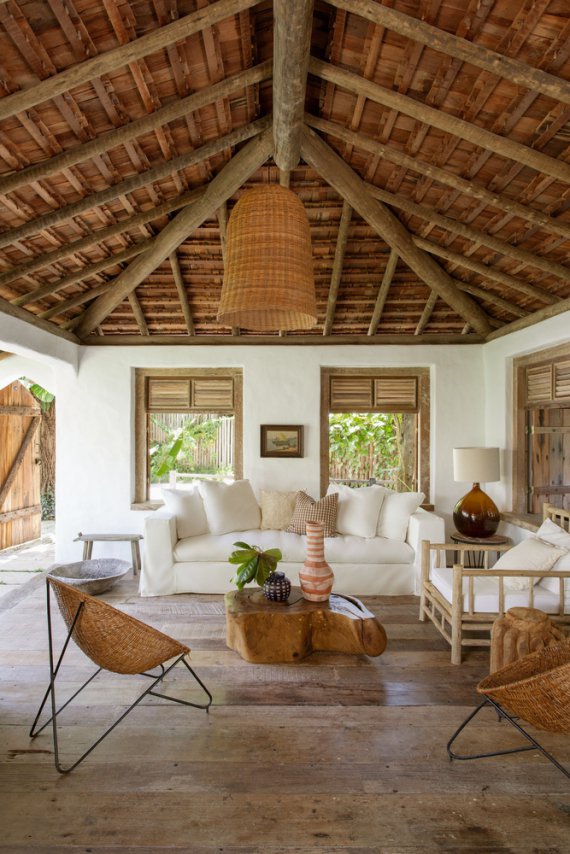 Дизайн витриманий однаковий, що у ванній кімнаті, так і у вітальні. Там переважає використання бетону, міді, деревини та кераміки. Там прості матеріали створюють затишну атмосферу із сільськими нотами. Елегантний тон пронизує весь проект.