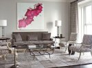 Меблі для сіро-фіолетового інтер'єру може бути в кольорі дерева або в чорному, сріблястому, білому.