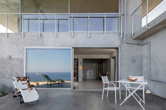 Спорудили будинок з монолітних бетонних плит. Інтер'єр оформили в стилі мінімалізму. На рівні другого поверху прибудували 2 тераси: на одній облаштована обідня зона, на іншій — 15-метровий безбортний басейн. З обох відкривається панорамний вид на Іонічне море. Пише boutique-homes.