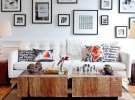 Ефектно заповнити порожній простір, не захаращуючи при цьому стіни, можна за допомогою розміщення фото і картин в рамках на підлозі.