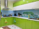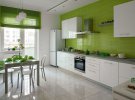 Яскрава зелена палітра створює заспокійливу атмосферу на кухні. Пасує для кімнат, де бракує сонячного тепла й близькості з природою. Цей колір не дратує, не втомлює, не дає негативних емоцій.