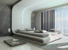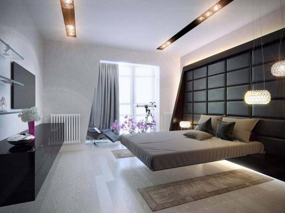 Глянцеві фасади, хромована фурнітура та ніжки і використання металевих предметів особливо вітаються в стилі хай-тек. У такій спальні потрібно зберегти якомога більшу кількість вільного простору, тому з масивних предметів залиште тільки ліжко і шафа.