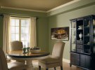 Використання оливкового кольору для обробки стін вітальні можна назвати ідеальним рішенням в тих випадках, коли інтер'єр приміщення створюється з "нуля". Темним варіантам оливкового кольору слід оформити лише одну зі стін. Таке рішення помітно освіжить кімнату і позбавить вас від неприємної "болотної" атмосфери.
