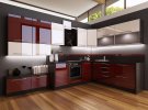 Складно поєднується вишневий колір з темними тонами, такими як венге, шоколадний, чорний. З ними кухня стає похмурою, але з ними можна поекспериментувати в дуже просторих приміщеннях.