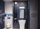Не обов'язково облицьовувати стіни плиткою до самої стелі. Ви можете зробити це тільки наполовину, а решта стіни покрити обраним кольором, наприклад, темно-синім, зеленим або навіть чорним.