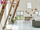 Поліровані бетонні підлоги й відкриті дерев'яні балки розбавляють білість внутрішнього простору, надають кімнатам простого й разом з тим вишуканого вигляду із ненав'язливим сільським колоритом. Брак кольорів компенсується наявністю безлічі різних текстур — бетону, деревини, текстилю. Вікна й численні скляні двері пропускають усередину велику кількість природного світла, що робить помешкання візуально більшим і затишнішим.