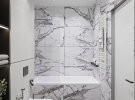 Приємні розслаблюючі відтінки ванної, які візуально розширюють приміщення в поєднані з графітовими акцентами.
