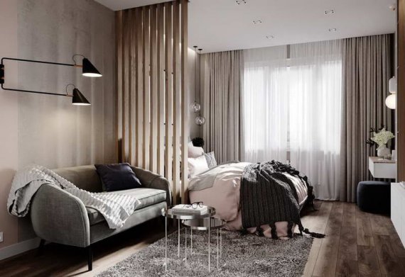 Спальня стане місце черпання сил, якщо її правильно обставити. Найголовніші аксесуари, на які слід звернути особливу увагу - штори та ліжко. Звичайний і нехитрий дизайн, якщо там вони виконані з одного матеріалу. Така спальня виглядає дуже красиво. Найчастіше подібний дизайн використовується в номерах знаменитих готелів.
