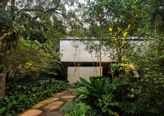 У тропічних лісах Бразилії архітектурна компанія Studio MK27 спорудила 2-поверховий будинок з усіма зручностями. У ньому є 7 спалень із затишним балконом у кожній, 8 ванн, вітальня, ігрова кімната для дітей, кухня й столова. На даху облаштована тераса з критою лаундж-зоною й басейном.