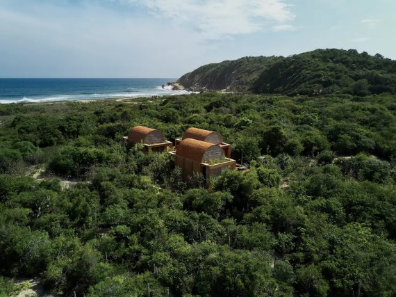 На тихоокеанському побережжі Мексики збудували усамітнене житло для відпочинку. Представляє собою воно три відокремлені споруди на одному фундаменті. У 2-х з них облаштовані спальні з ванною кімнатою при кожній. У третій — вітальня з кухнею й столовою. Останню від споруд, у яких облаштовані спальні, відділяє басейн.