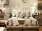 Ліжко у вінтажну спальню потрібне з узголів'ям, бажано кованим або дерев'яним. Поруч із ним слід поставити туалетні столики. Самі меблі можуть бути старими або штучно зістареними. Приміром, стане в нагоді бабусин комод або трюмо, однак за відсутності такого можна надати відповідного вигляду новим речам. Допоможе в цьому техніка декупаж. Органічно виглядатиме наявність на меблях подряпин або тріщин.