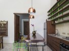 Освітлення та вентиляція є головними факторами для створення комфортної атмосфери. У ній переважними матеріалами є камінь, дерево, метал та білий цемент як облицювання стін. На підлозі створили килими різнокольоровою плиткою.