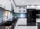 Кухня з чорним холодильником виглядає стильною. Видно, що її власники відкриті до експериментів. За допомогою цього кольору можна створити по-справжньому шикарну обстановку.