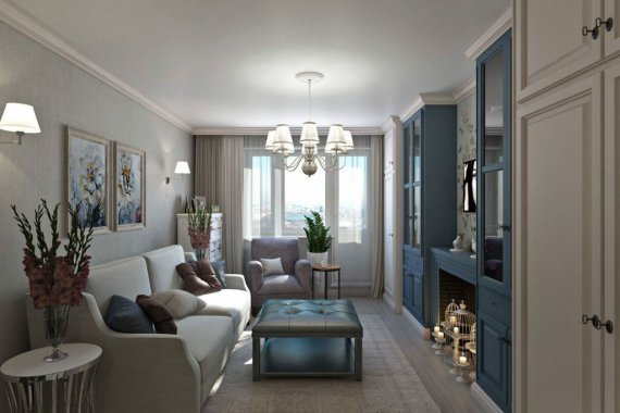 Великі вікна балкона пропускають надмірний яскраве світло в вітальню, тому в цьому випадку не забудьте встановити жалюзі або штори.
