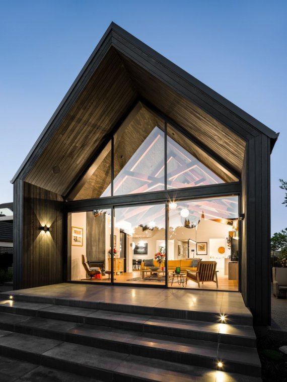Проте класичний двосхилий дах і чорне облицювання робить його стильним. У нього також є великі вікна, які ще більше подовжують будівлю.