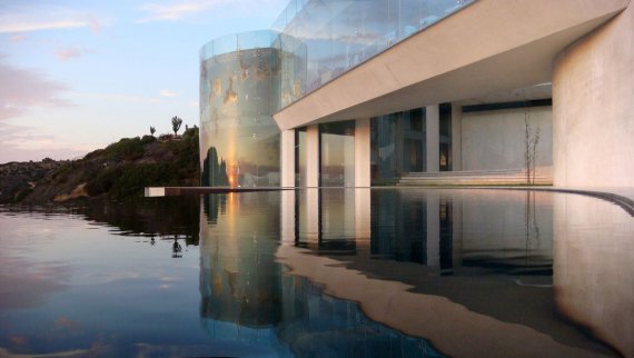 На каліфорнійському узбережжі прямо на схилі скелі спорудили розкішний будинок з панорамним видом на Тихий океан. За основний матеріал для будівництва використовували білий шліфований бетон і скляні панелі. Проект отримав назву Razor House. Обрали її на честь місцевої пам'ятки.