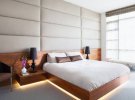 Жіночність і розкіш спальні може надавати м'яка оббивка ліжка, а більш сексуального або чоловічого виду можна домогтися, вибравши шкіряне узголів'я темних тонів.