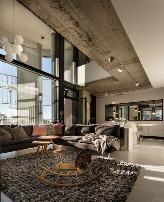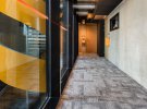 Відповідно до оригінальної індустріальної атмосфери, бетонні поверхні є яскравим елементом у всьому будинку. Індустріальний дизайн коридорів у поєднанні з сучасними матеріалами створює готельне відчуття.