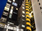 Дах будинку обладнали сауною і затишною терасою. Фасад будівлі виконано з використанням відображає чорного і сірого фасадного скла. Круглі силосні споруди замінюють балконні зони. Там розташована металева решітка, яка підтримує круглу форму. Балкони є багатофункціональними і слугують розширеннями апартаментів.