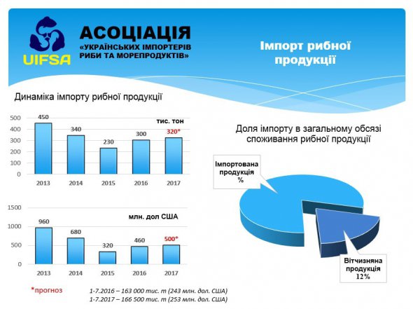 Споживання риби і морепродуктів залишається на низькому рівні. На одного українця припадає 9 кг (у 1991 році - 24 кг. -Gazeta.ua) риби на рік. Для порівняння, в Японії доходить до 70 кг. В європейських країнах - 20-30 кг.
