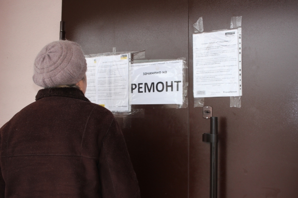 На дверях відділення на вулиці Борщагівській написано великими літерами "Ремонт". Він триває з 26 грудня. Відтоді співробітників перевели у приміщення "Ощадбанку" на бульварі Шевченка.