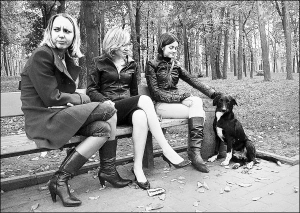 У парку після лекцій відпочивають студенти. На лавці сидять 20-річні Ольга Войтенко, Юля Проскурня та Юля Ковтун. За лавкою сплять чотири собаки. Ще одна бігає навколо, гавкає на перехожих.