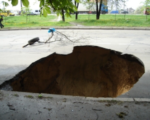Ціла київська вулиця вже рік перекрита, тому що може у будь-який момент піти під землю. Тут знаходиться старий колектор. І сьогодні він тріснув знову. Через це зникла частина дороги біля пішохідного переходу. На щастя, ніхто не постраждав. Ремонтники впевнені: ремонтувати колектор - безглуздо, тому що він зовсім дірявий. Всьому виною газ, який виділяється зі стічних вод. Він збирається у верхній частині труби і за 30 років її використання повністю роз'їв бетон.