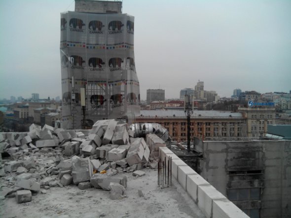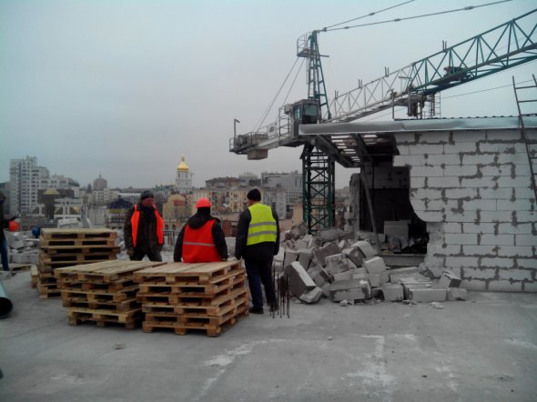 "Робимо демонтаж своїми силами. Привезли кран, працюють наші робітники. Розбирають стіни та спускають їх до низу. Ніяких незручностей перехожим на Хрещатику немає. Приблизна вартість робіт — від 800 тисяч до мільйона гривень. Їх потім забудовник компенсує в бюджет міста. Збираємось подати на нього до суду", - розповідав тоді Володимир Прокопів, секретар Київради.