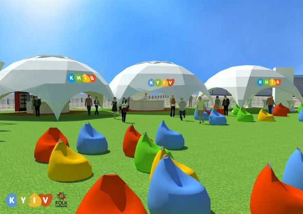 Форма містечка візуально має нагадувати офіційний символ конкурсу - намисто. Кольори повторюватимуть логотип Києва туристичного.