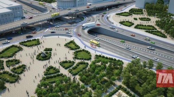 У тому ж році архітектори Юрій Кузьмін і Олександр Макаренко представили концепцію розв'язки. В її основі був проект Віктора Петрука, доповнений громадським простором і великою пішохідною зоною.