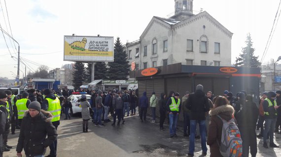 Правоохоронці видворили всіх з бази організації на заводі "Атек", що біля метро Святошин. Активісти вийшли на вулицю і перекрили проспект Перемоги у напрямку центру.