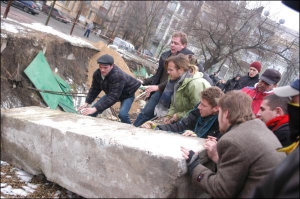 У суботу вдень півсотні активістів громадської ініціативи "Збережи старий Київ" влаштували на розі Пейзажної алеї та пров. Десятинного, що в центрі міста, ліквідацію котловану. Вони разом із місцевими засипали яму, вириту компанією "УМ-інвест" під висотку.