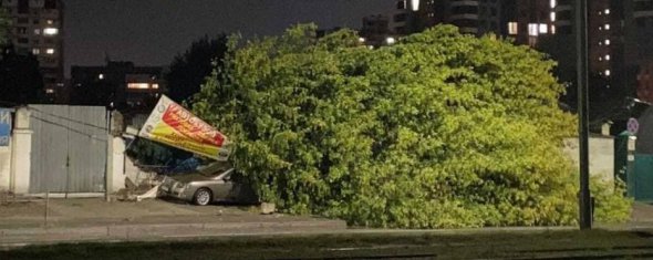 Через зливу центр столиці затопило. У багатьох районах ураган повалив дерева й поламав гілки.