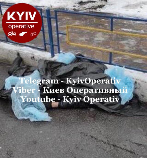 У спільноті "Київ Оперативний" зазначили, що тіло чоловіка деякий час просто лежало на вулиці прикрите плівкою на очах у перехожих.