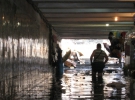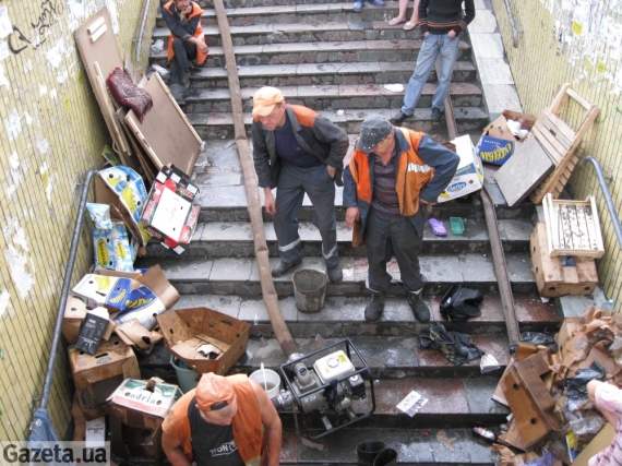 За словами очевидців, буквально за десять хвилин в переході води вже було по коліна. Вона лилася з Індустріального мосту на сходи, а звідти - в перехід. Продавці місцевих кіосків і яток змушені були покинути затоплену підземку. Хто, що зміг, те й виніс.