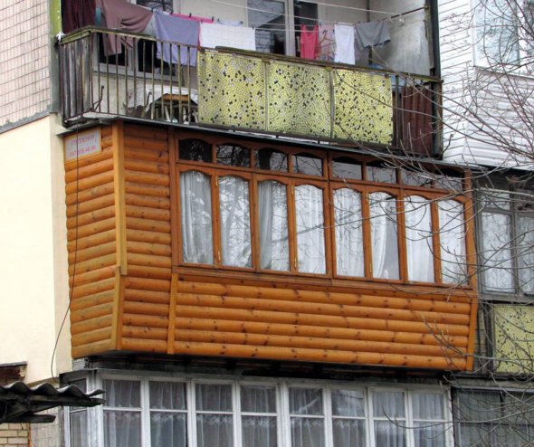 "Коли ти в хрущобі, а ти - в теремі", - прокоментували користувачі соцмережі оббитий деревом балкон на Борщагівці.