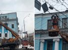 Сьогодні, 1 грудня, на вул. Богдана Хмельницького в Києві встановлювали новорічну гірлянду. Святкова ілюмінація на тросових розтяжках розташована над проїжджою частиною.