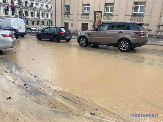 У п'ятницю, 14 травня, на вул. Пушкінській у Києві прорвало трубу. Через це магістраль залило окропом і мулом.