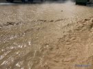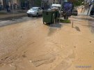 Унаслідок аварії у дворі провалився асфальт, а вся вулиця вкрилася жовтою багнюкою.
