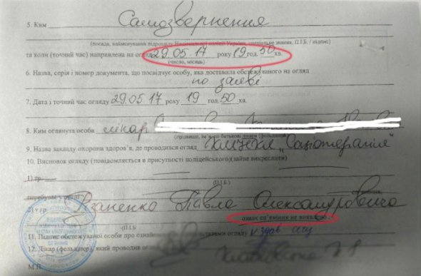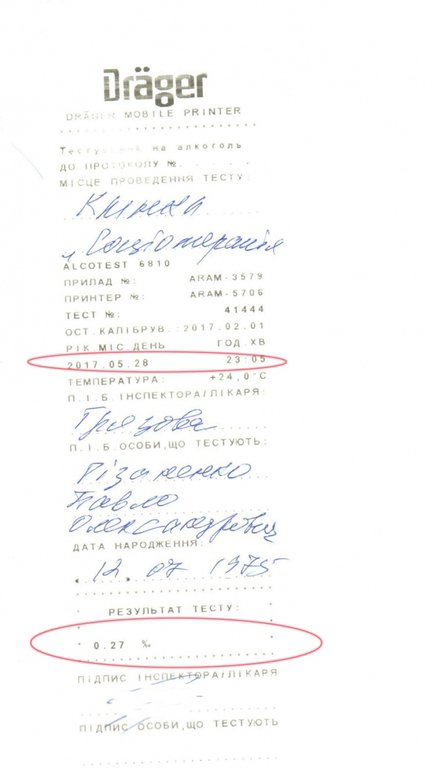 Він надав підтверджувальний документ з клініки. Також показав довідку, зроблену наступного дня. У ній зазначено, що станом на 19:50 29 травня ознаки сп'яніння у нардепа не виявили.