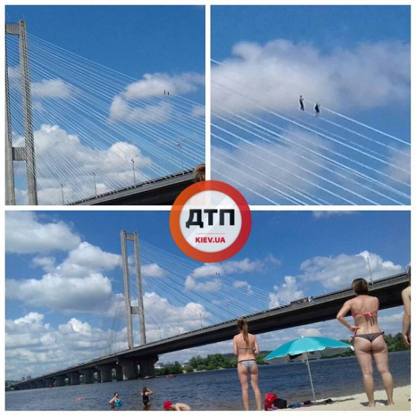 "Ранкова НП в Києві на південному шляхопроводі: малолітки лізуть вгору по тросах, два тіла. На місце виїхали всі служби і "труповозка" про всяк випадок. Однак якщо не дай бог хлопці впадуть у воду, знайти тіло буде вкрай складно зважаючи на сильну течію і велику кількість будматеріалів на дні. Теж саме стосується району пішохідного моста. За словами рятувальників ймовірність знайти там потонуле тіло - менше 10%", - йдеться в повідомленні.