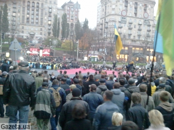 15-тисячна колона розтягнувся на кілометр. О 18.30 її "голова" прибула на площу. У той час як "хвіст" знаходився тільки на Хрещатику. В кінці йдуть футбольні фанати, які палять фаєра.
