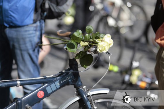Від Кабміну колонна рушила до КМДА – туди повернули білий велосипед, символічний пам'ятник загиблим велосипедистам.