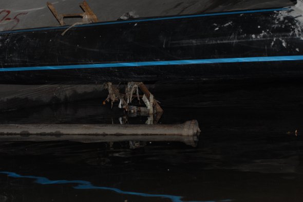 З колектора нерівномірно витікає вода. В обличчя віє запахом аміаку й сірки. Ступаємо у воду. Через бахіли відчувається холод. Спочатку здається, що вони пропускають вологу. Від хлюпання роздається незвичний гул. Гід просить піднімати ноги вище, щоб не забризкувати штани тим, хто йде поруч. Ліхтарики підсвічують стіни колектора – вони сірі, бетонні. За приблизно 20 м від входу прохід розширюється – з'являється щось на кшталт "коліна", з якого вода тече двома рукавами. Один потік струменить до входу, у який ми зайшли, а інший – правим каналом. Стеля в "коліні" колектора різновисока – чередуються панелі, під якими можна стояти на повний зріст, і ті, під якими треба згинатися. Тут група зупиняється – чекаємо на завершення дощу.