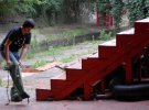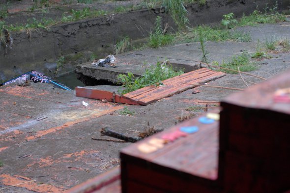 – Це дощова каналізація – опади стікають через спеціальні отвори. Під час злив восени рівень води піднімається аж до мосту, – показує на місток над нами. – Майже заповнює колектор, який заввишки два метри. Тому перебувати під час сильного дощу в колекторі смертельно небезпечно. Вже офіційно відомо про чотири жертви – люди потрапили під час зливи до колектора й не змогли вибратися.