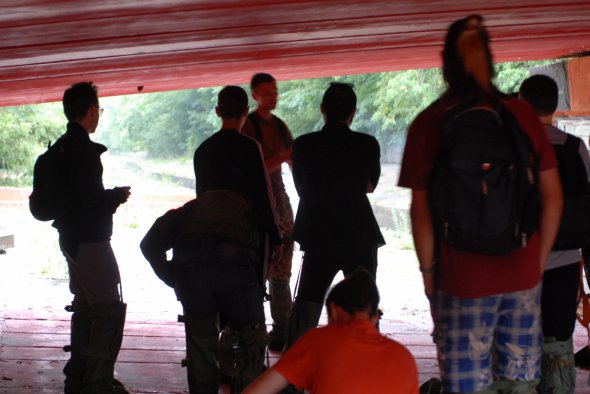 Гід пояснює: мусимо тут почекати точного прогнозу погоди. Якщо дощ посилиться – в колектор групу не вестимуть.